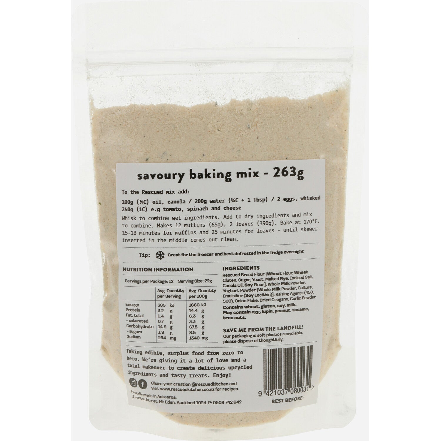 Made with 100% rescued bread flour and 100% easy to make. Add 240g of anything that needs rescuing from your fridge like spinach, cheese or tomatoes. Share your creation @rescuedkitchen.