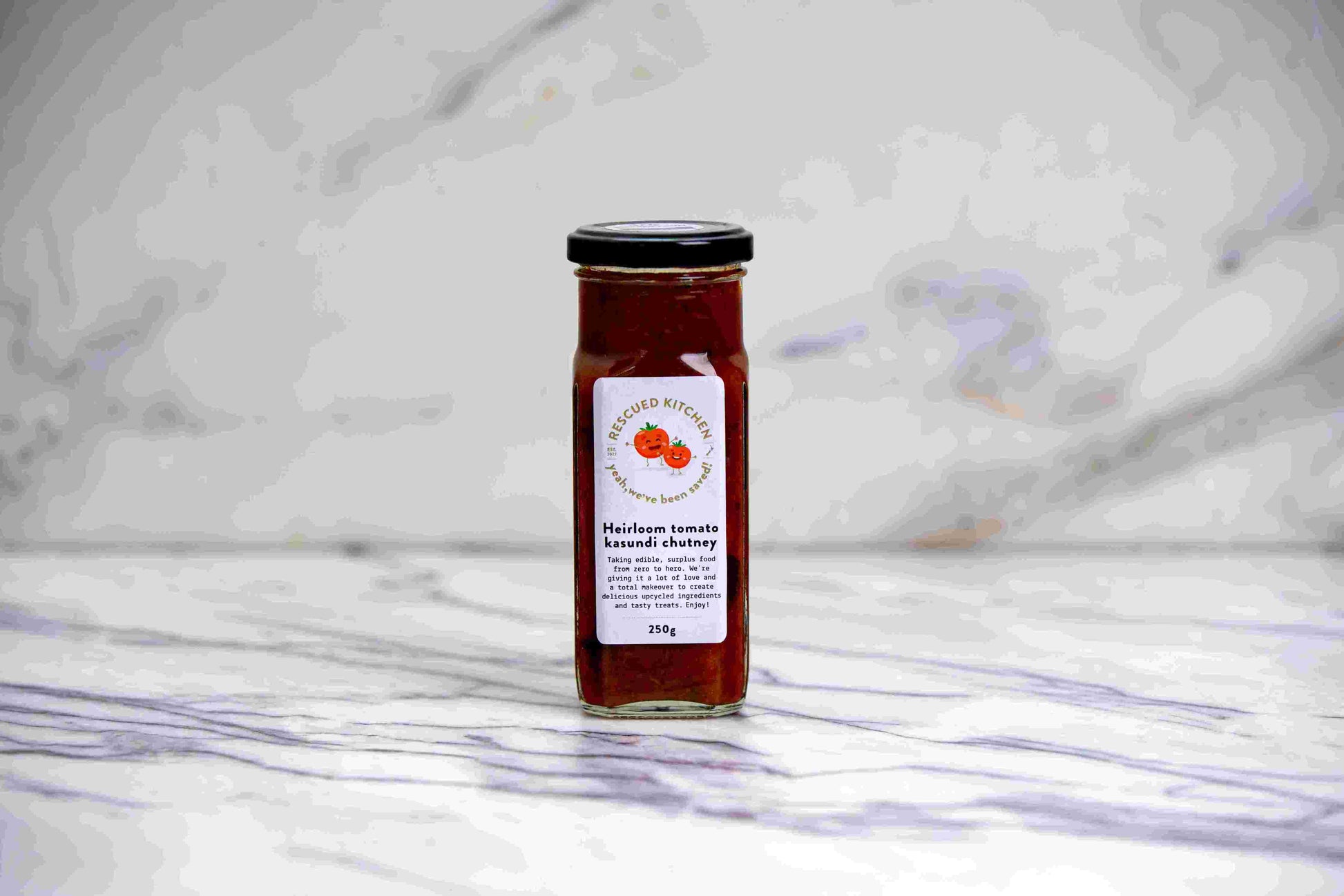 100% rescued tomatoes are transformed into this traditional Indian spiced chutney. Perfect on a cheeseboard or straight dunking with rescued spent grains seed crackers, smothered on a sandwich, burger, toastie or on the side of anything.